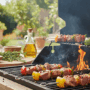 - Préparez des brochettes en alternant des morceaux de magret, d'oignon et de tomate. Huilez-les au pinceau, puis roulez-les dans les épices.