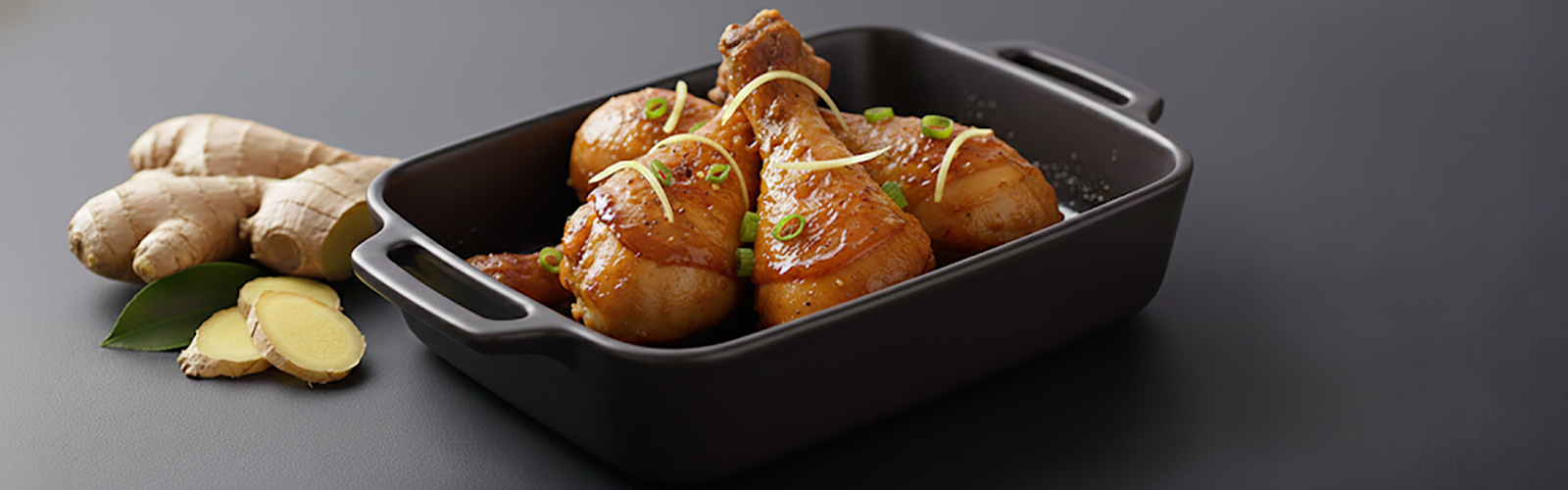 - Préparer la marinade avec : le sucre, 3 càs de sauce soja, l'huile de césame, la gousse d'ail coupée en petits dés et le gingembre épluché et découpé en fines lamelles.